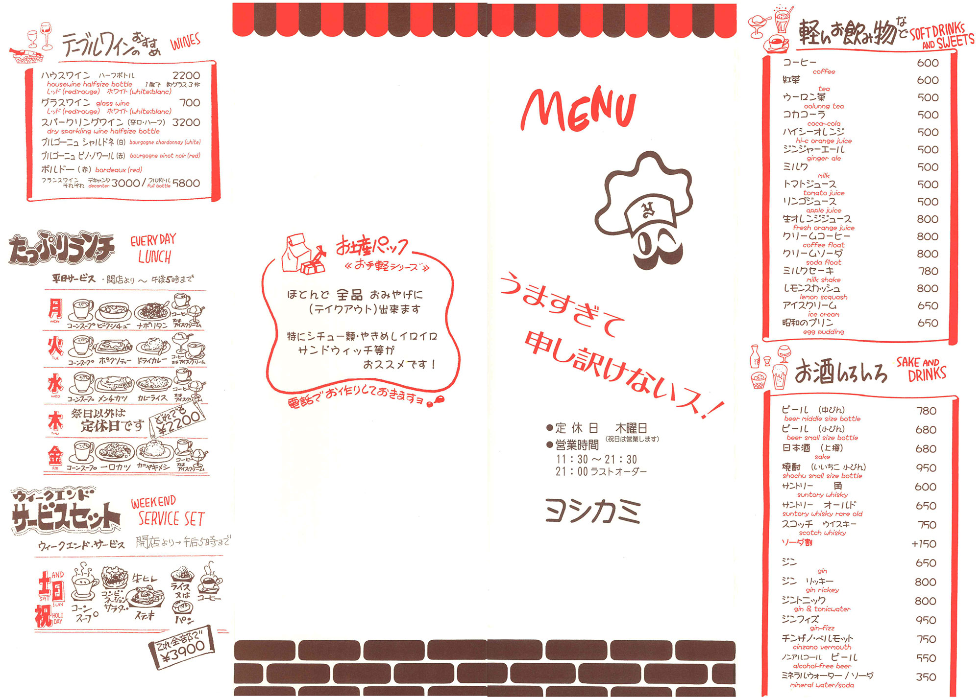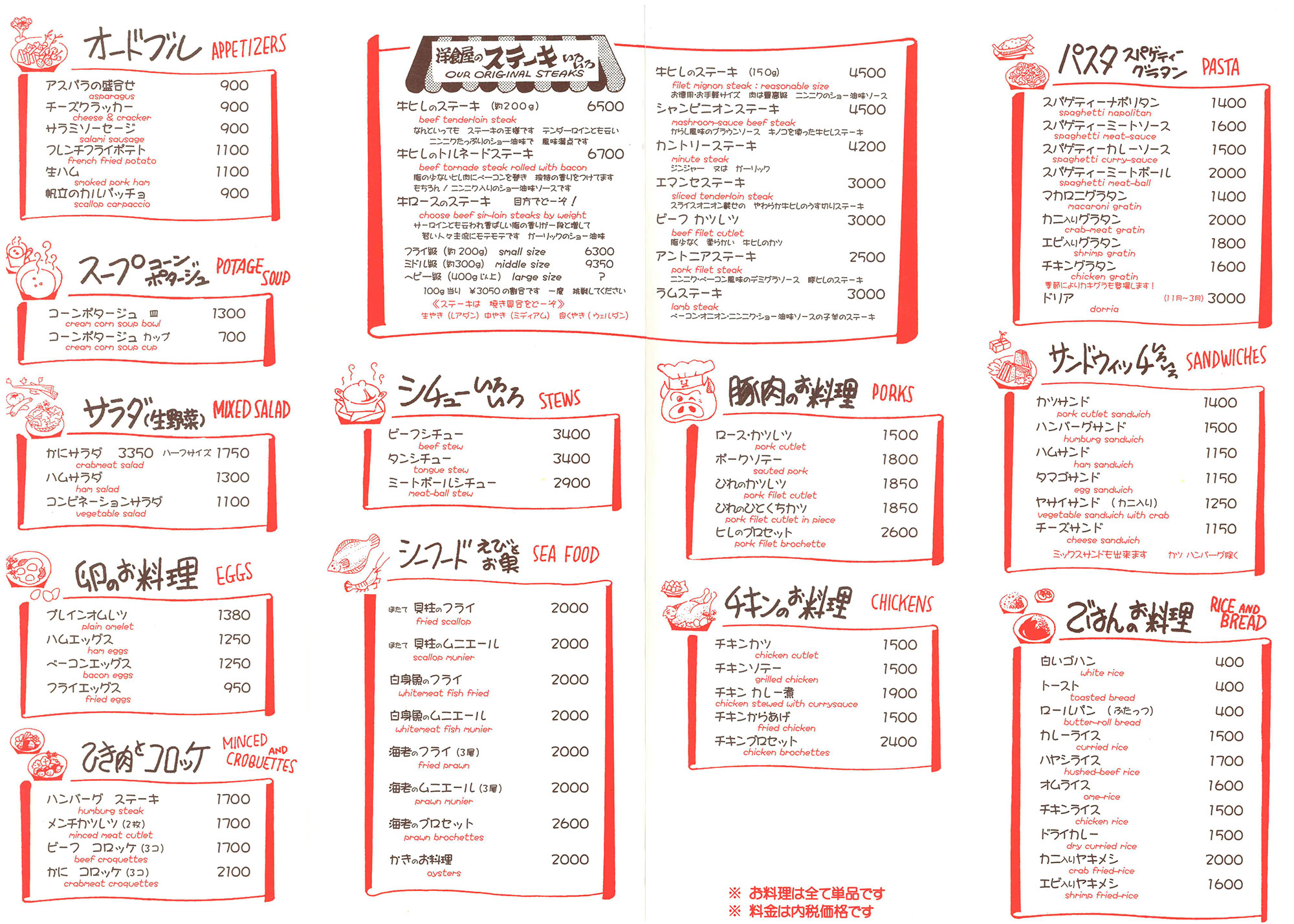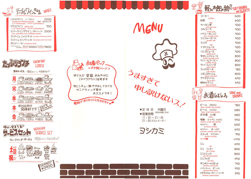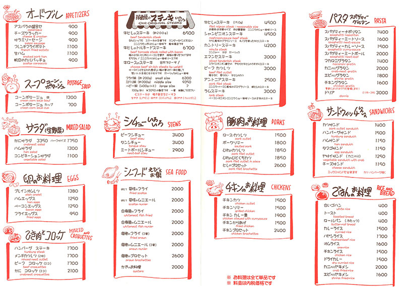洋食屋さんのメニュー